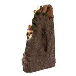 The 10.4-Inch Battery Operated Light-Up Nativity Table Piece is a lovely reminder of the meaning of Christmas. This piece features a wooden stable design, with the Star of Bethlehem and stationary characters from the nativity scene in intricate detail. Figures include, the Holy Family, the Three Wise Men, a shepherd, a donkey, a sheet and a cow. When switched on, 10 warm white LED lights glow for a peaceful effect. Powered by 2 AA batteries (not included).