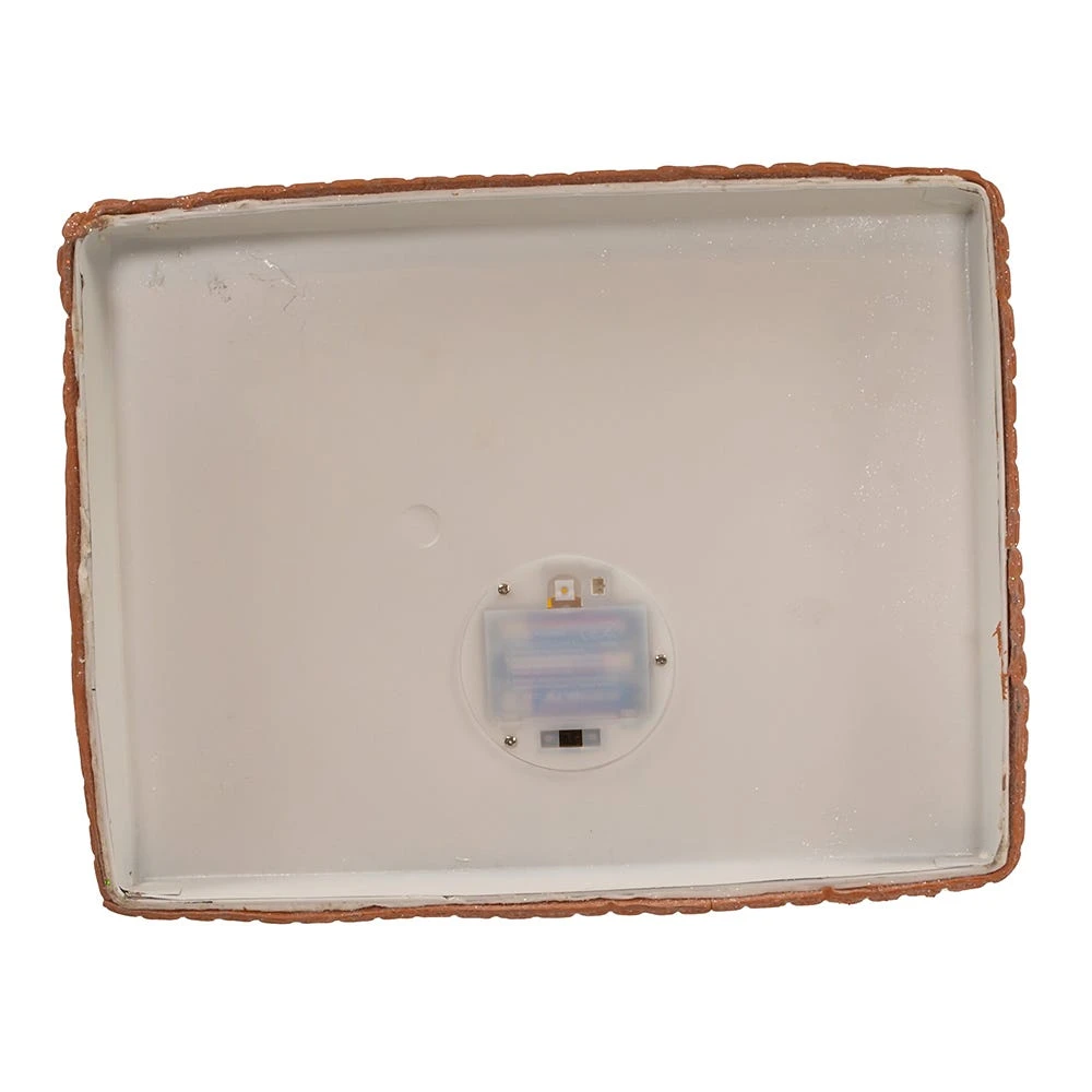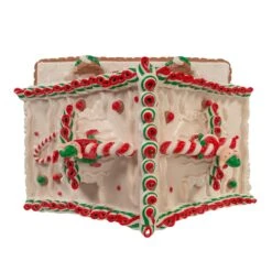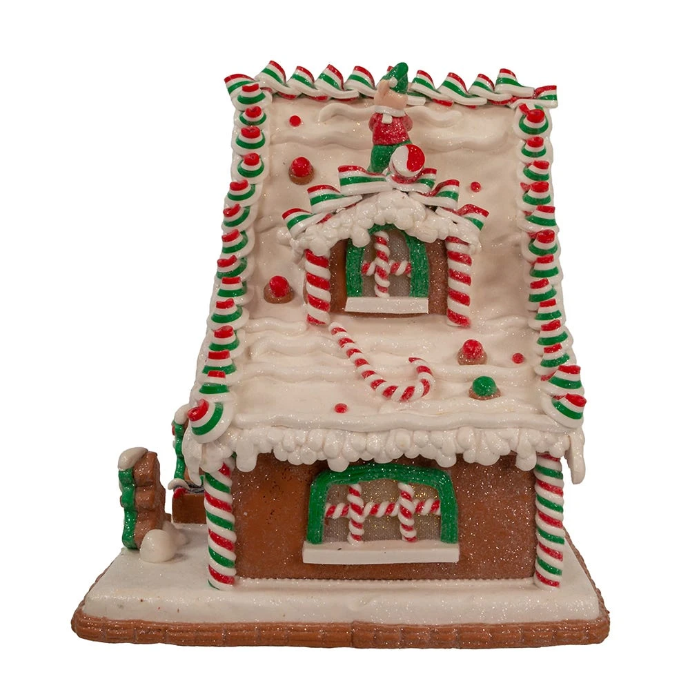 Add a fun, classic touch to your holiday décor with this 10.5-Inch Battery-Operated Light Up Santa’s Workshop Gingerbread House from Kurt Adler. “Santa’s Workshop” features a gingerbread store festively decorated with candy-inspired detailing, white glittered snow and is battery-operated, requiring 3 AAA batteries not included. It comes with 1 warm white 5mm LED bulb that illuminates the interior and exterior of the workshop, giving it a warm and cozy appearance. The piece also features miniature figurines of Santa Claus and his elves, adding an extra touch of holiday cheer to the display. This charming decoration is sure to bring some holiday cheer to any room or tabletop.