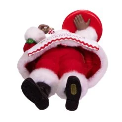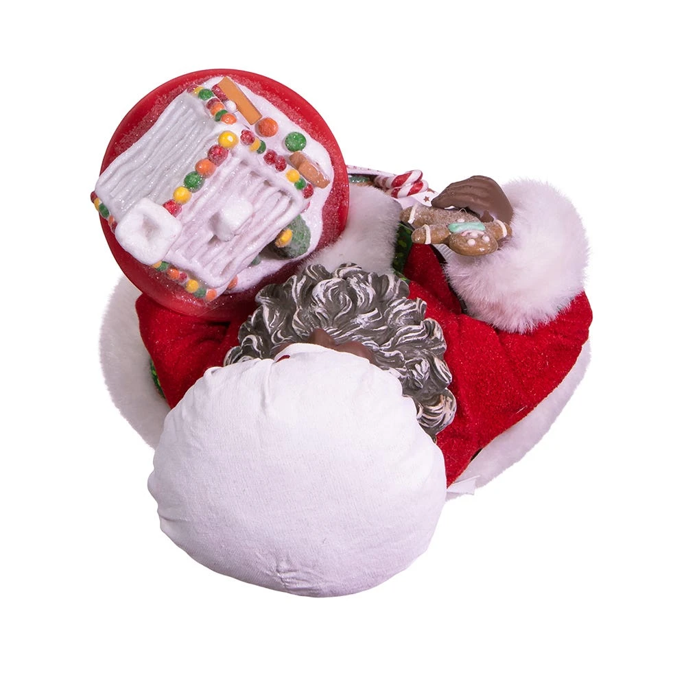 This 10.5-Inch Fabriché™ Black Chef Santa from Kurt Adler is perfect to celebrate the baker in your life! Santa is wearing a “Merry Christmas” apron decorated with red trim and a matching chef’s hat while carrying a decorated gingerbread house in one hand and a gingerbread cookie in the other hand. This is a perfect addition to any holiday decor.