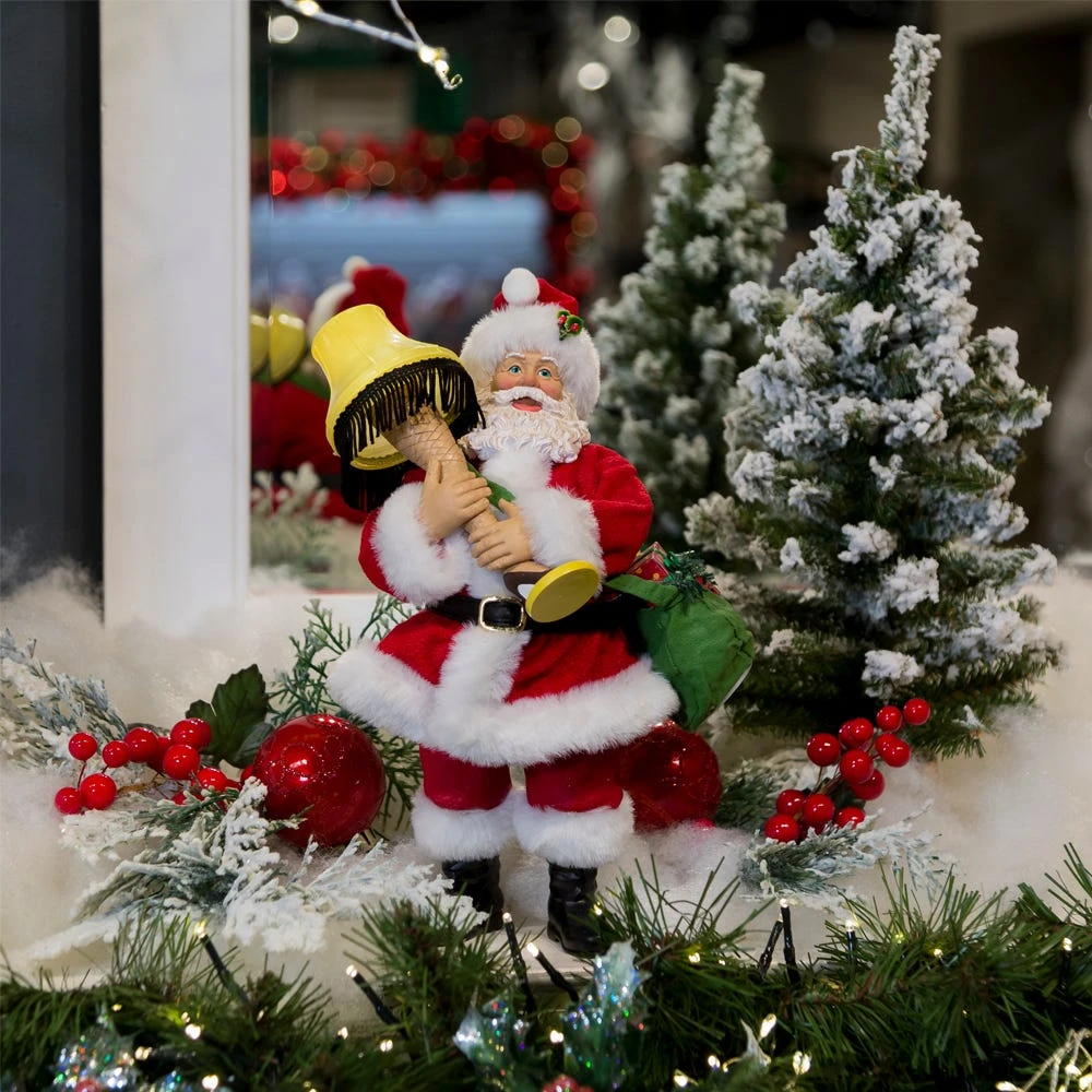 This 10-Inch Leg Lamp Fabriché Santa with Light from Kurt Adler is a fun and festive addition to the holiday décor or collection of any fan of A Christmas Story! Santa Claus is featured here in his signature red and white suit, and it appears he’s won “a major award!” In his arms is the iconic leg lamp from the movie, which lights up when activated! Battery-operated, this pieces uses a 1.5V button cell battery (not included).