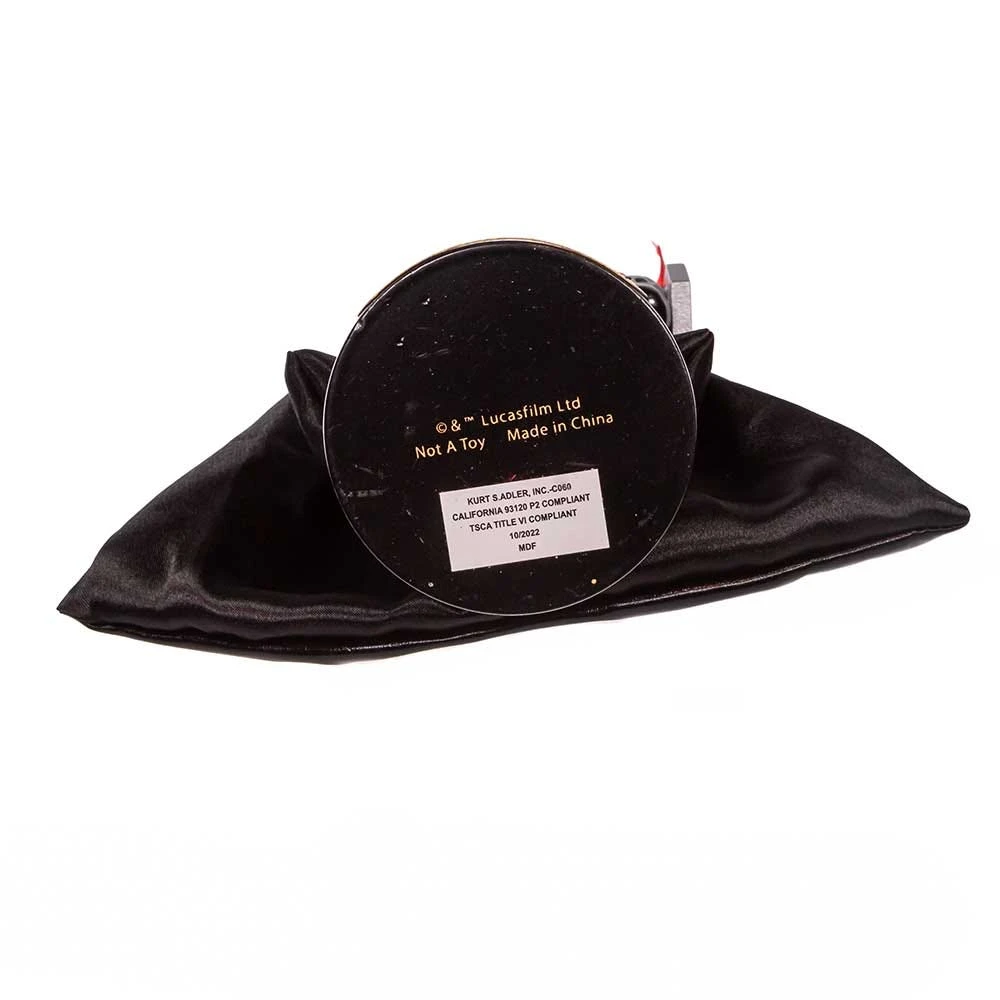 This 10-Inch Star Wars™ Vader with Tie Fighter Nutcracker from Kurt Adler is a festive addition to any home or office décor. It features Darth Vader in a red and white Santa hat holding a “To Luke From Your Father” gift. He stands on a round base with a “Darth Vader” name plate.