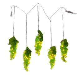 Wine don’t you? Complete the atmosphere with this Kurt Adler 100-Light Green LED Grape Light Set with 5 Grape Bunches! Featuring five bunches of green grapes on brown wire. Each grape is illuminated from within by warm white LED lights. Whether it’s a food tasting, wine tasting or even a simple dinner gathering, this light set will enhance your décor.