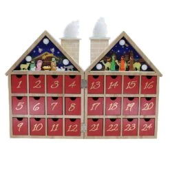 This Battery-Operated Wooden LED Nativity Advent Calendar from Kurt Adler is a fun and festive way to count down the days until Christmas during the advent season! Its unique design includes a twin housing with a nativity scene featuring the Holy Family, and three kings travelling to meet the baby Jesus. The base for this tranquil scene contains 24 tiny drawers.