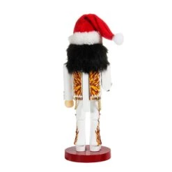 This Elvis® Presley nutcracker by Kurt Adler is perfect for any Elvis® fan or nutcracker collector! The King is featured here wearing a colorful flame suit with red gems, and a classic Santa hat. He is holding a wireless silver microphone.