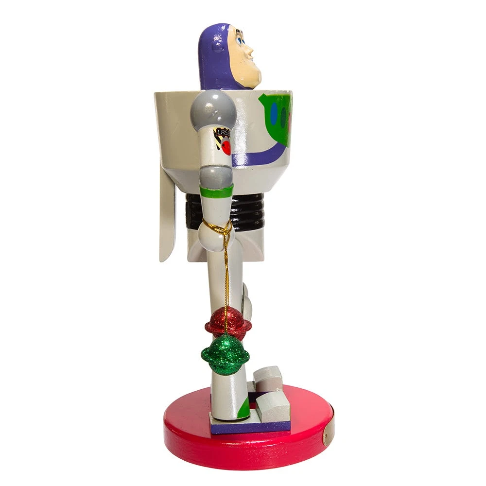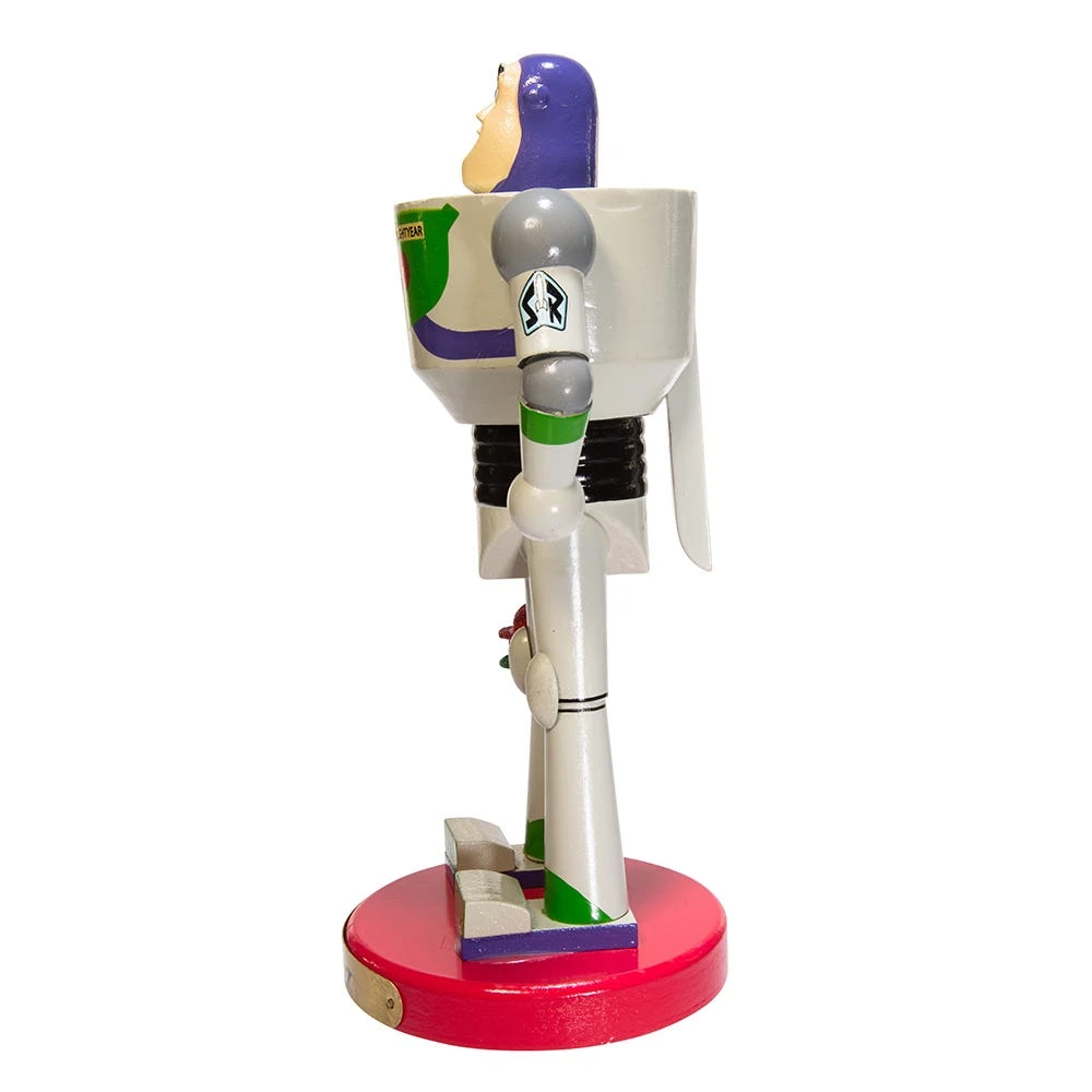 This 11-Inch Toy Story Buzz Lightyear Nutcracker from Kurt Adler is a fun addition to any holiday décor or nutcracker collection! Buzz Lightyear from the “Toy Story” movies is featured here in his classic space suit. He is standing on a round red base with a gold-colored “Buzz” plaque.