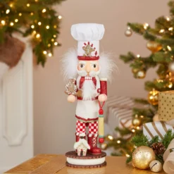 Hollywood Nutcrackers is a whimsical collection of nutcrackers created exclusively for Kurt S. Adler, Inc. and features an assortment of designs that put a unique, vibrant, memorable twist on traditional nutcrackers. This 15-Inch Gingerbread Chef Nutcracker from Kurt Adler is a fun and festive addition to any holiday decor or nutcracker collection. Its red and white design is embellished with gingerbread-inspired detailing for an extra festive touch.