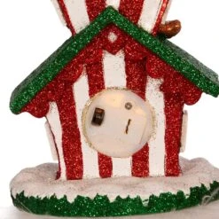Hollywood™ Nutcrackers is a whimsical collection of nutcrackers created exclusively for Kurt S. Adler, Inc. and features an assortment of designs that put a unique, vibrant, memorable twist on traditional nutcrackers. This 15-Inch Hollywood™ Battery-Operated LED Gingerbread House Hat Nutcracker features a red, white and green glittered color scheme, a glittered gingerbread man balancing a tray of glittered sweets and a glittered gingerbread house hat that is illuminated from within for a soft glow.