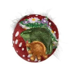 Hollywood Nutcrackers™ is a whimsical collection of nutcrackers created exclusively for Kurt S. Adler, Inc. and features an assortment of designs that put a unique, vibrant, memorable twist on traditional nutcrackers. This 16.5-inch unique piece is a fun, colorful new take on the Frog Prince. Wearing shades of red, blue, and tan this glittery, quirky piece is standing on a glittered mushroom base and holds a bird topped staff and is topped with a mushroom hat with a frog prince, complete with a regal gold crown.