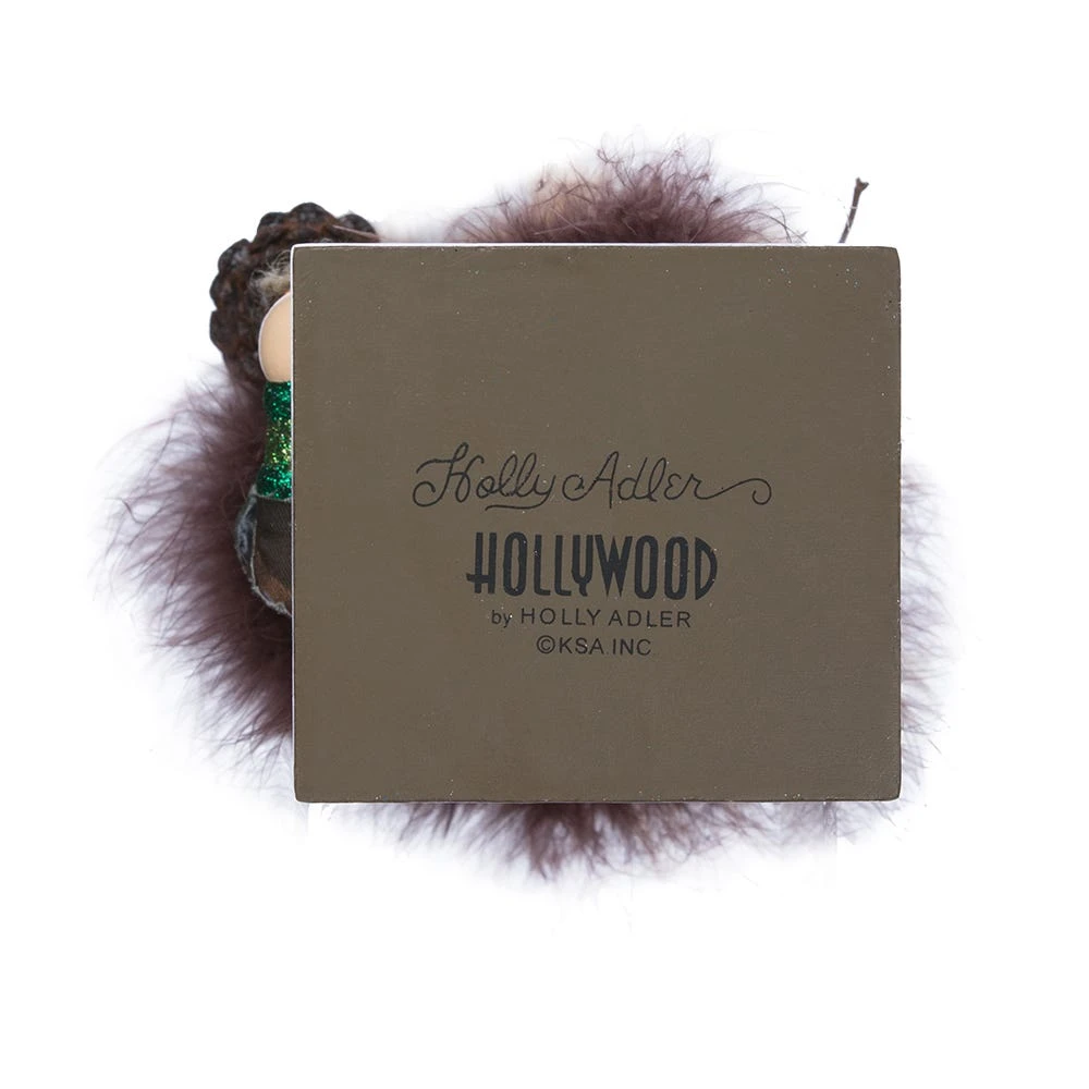 Hollywood Nutcrackers is a whimsical collection of nutcrackers created exclusively for Kurt S. Adler, Inc. and features an assortment of designs that put a unique, vibrant, memorable twist on traditional nutcrackers. This rugged woodsman is dressed in earth tones accented with glitter, and the design of his fun features a friendly owl sitting in a nest trimmed in feathers.