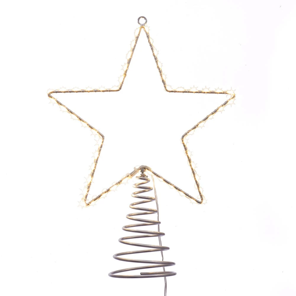 This 17.5-Inch Metal Lighted LED Star Treetop from Kurt Adler is an eye-catching adornment for your Christmas tree. The star is wrapped in warm white micro LED lights with 0.63-inch bulb spacing. Suitable for indoor and outdoor use.