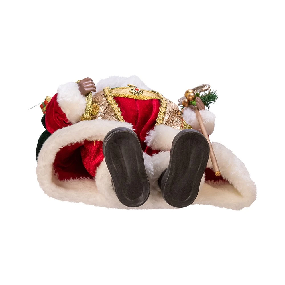 This 18-Inch Kringle Klaus African American Santa from Kurt Adler is a fun and festive addition to any holiday décor. Part of the Kringle Klaus collection, Santa is featured wearing a regal red and white coat with matching hat. In one hand is a staff, and in his other hand is a sack of gifts.