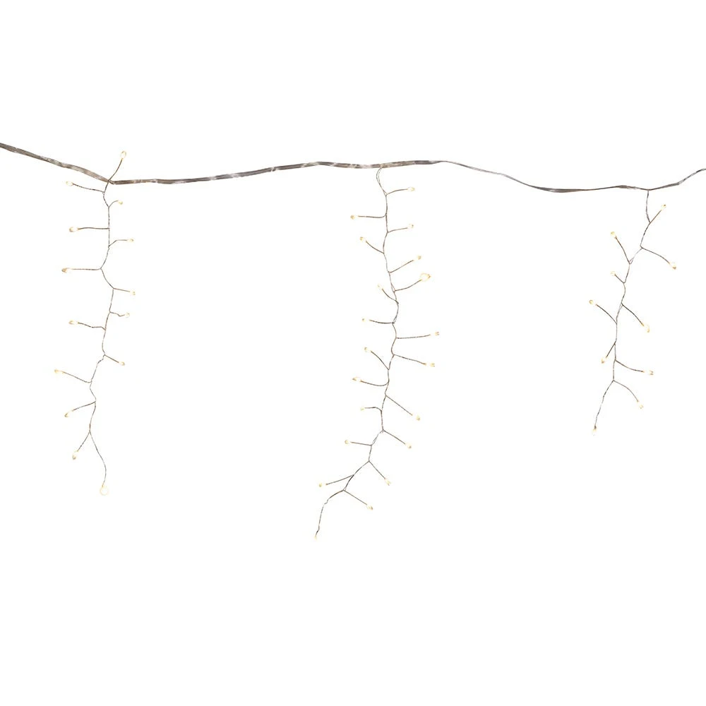 Add some light to your home or holiday décor with Kurt Adler’s 294-Light 20 Drop Dual Color LED Icicle Set. This light set features a total of 20 drops of varying sizes and has multi-function capabilities for a modern addition to your home holiday lighting décor. There is 10-inch spacing between drops and a 15-foot lead wire Light functions include: combination, warm white steady, multicolor steady, warm white slow glo , multicolor slow glo, sequential, twinkle, slow fade, slow glo.