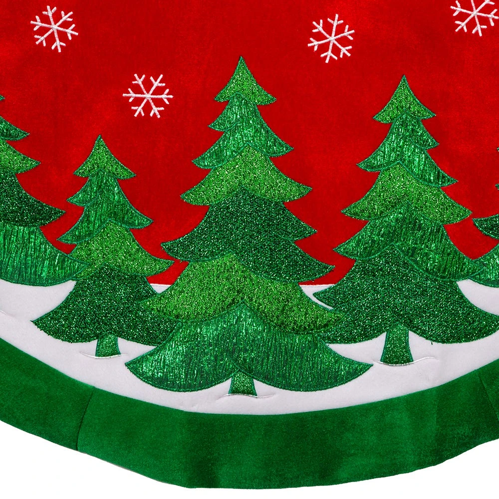 Kurt Adler 48-Inch Red Velvet with Green Trees Tree Skirt