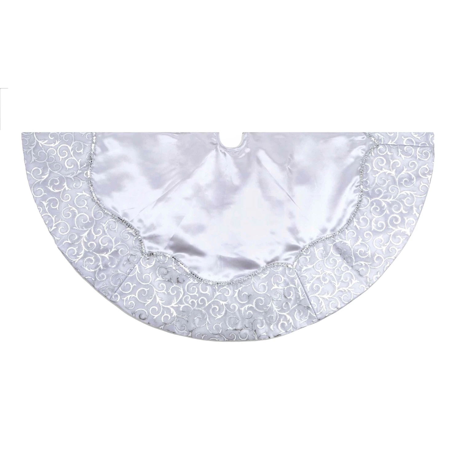 Kurt Adler 48-Inch Silver Satin w/ Printed Border Tree skirt