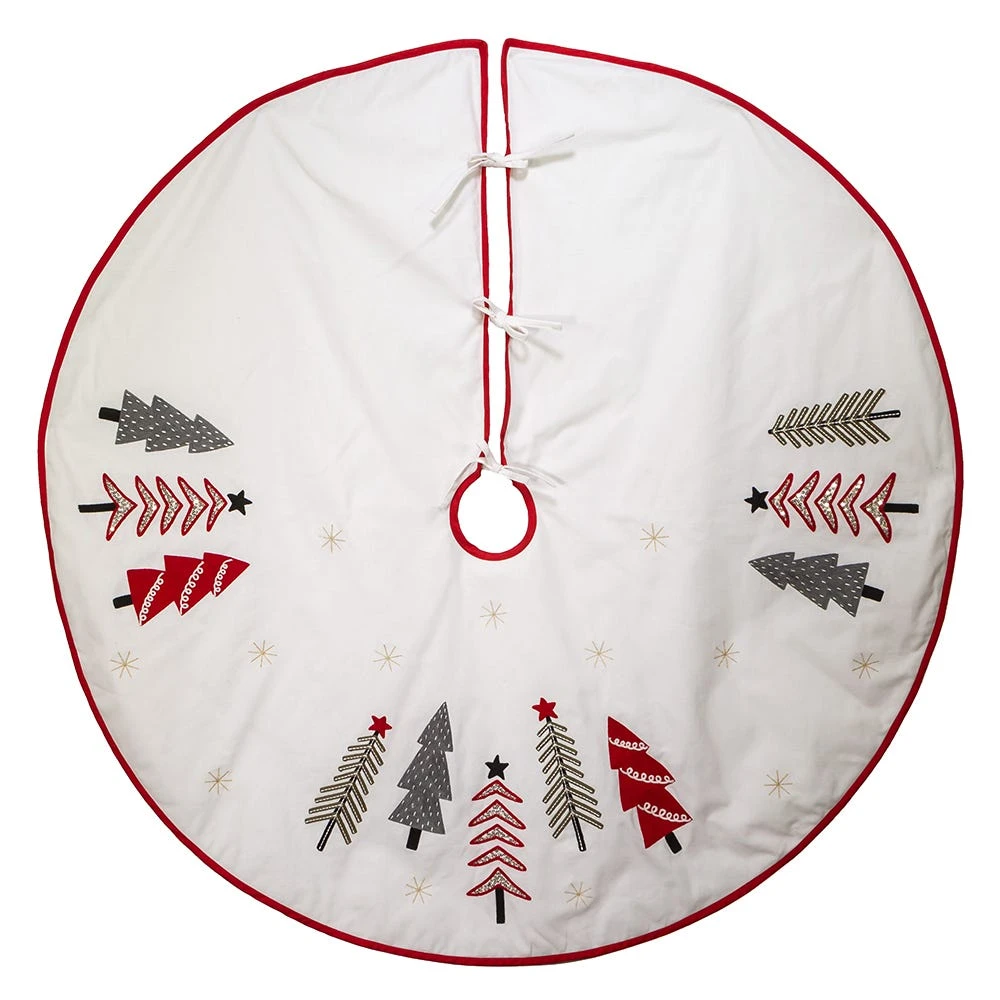 Kurt Adler 50-Inch Ivory, Green and Red Tree Embroidered Tree Skirt