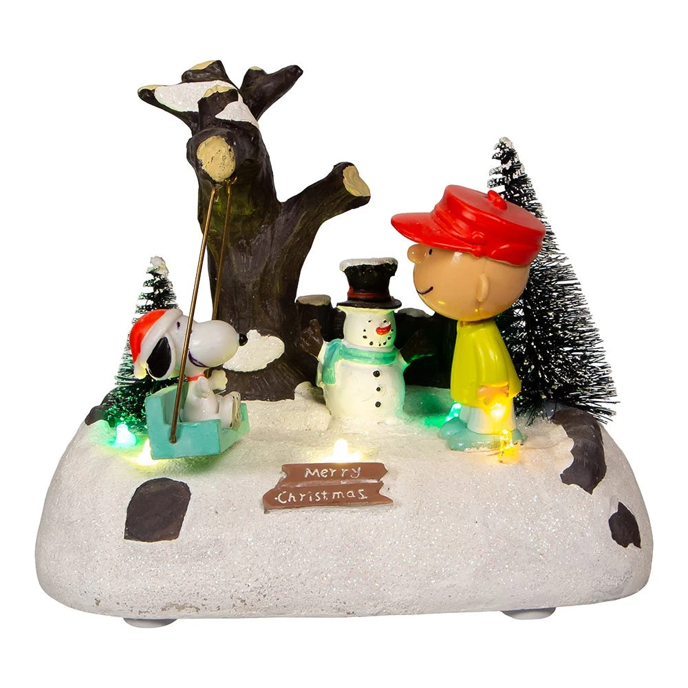 This 6.75-Inch Battery-Operated Snoopy on Swing Lit Musical Table Piece is a fun and festive addition to any holiday décor. It features a winter scene with Charlie Brown, a snowman and Snoopy on a swing. When activated this item play the musical tune “Linus and Lucy”. It requires 3 AA batteries (not included).