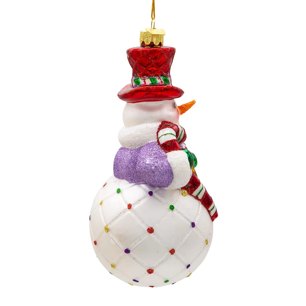 Kurt Adler 7-Inch Bellissimo Glass Snowman With Candy Cane Ornament