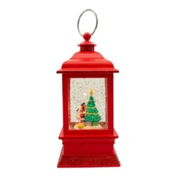 This 9-Inch Battery-Operated Disney© Mickey and Minnie Spinning Musical Light-Up Lantern from Kurt Adler is a fun and festive addition to any holiday décor. It features Mickey Mouse and Minnie Mouse standing in front of a decorated Christmas tree. Each are holding a music book and when activated, this lantern is illuminated with one warm white LED light and plays 8 different Christmas songs and the swirling glitter design gives the scene a snowy effect. Requires 3 AA batteries, not included.