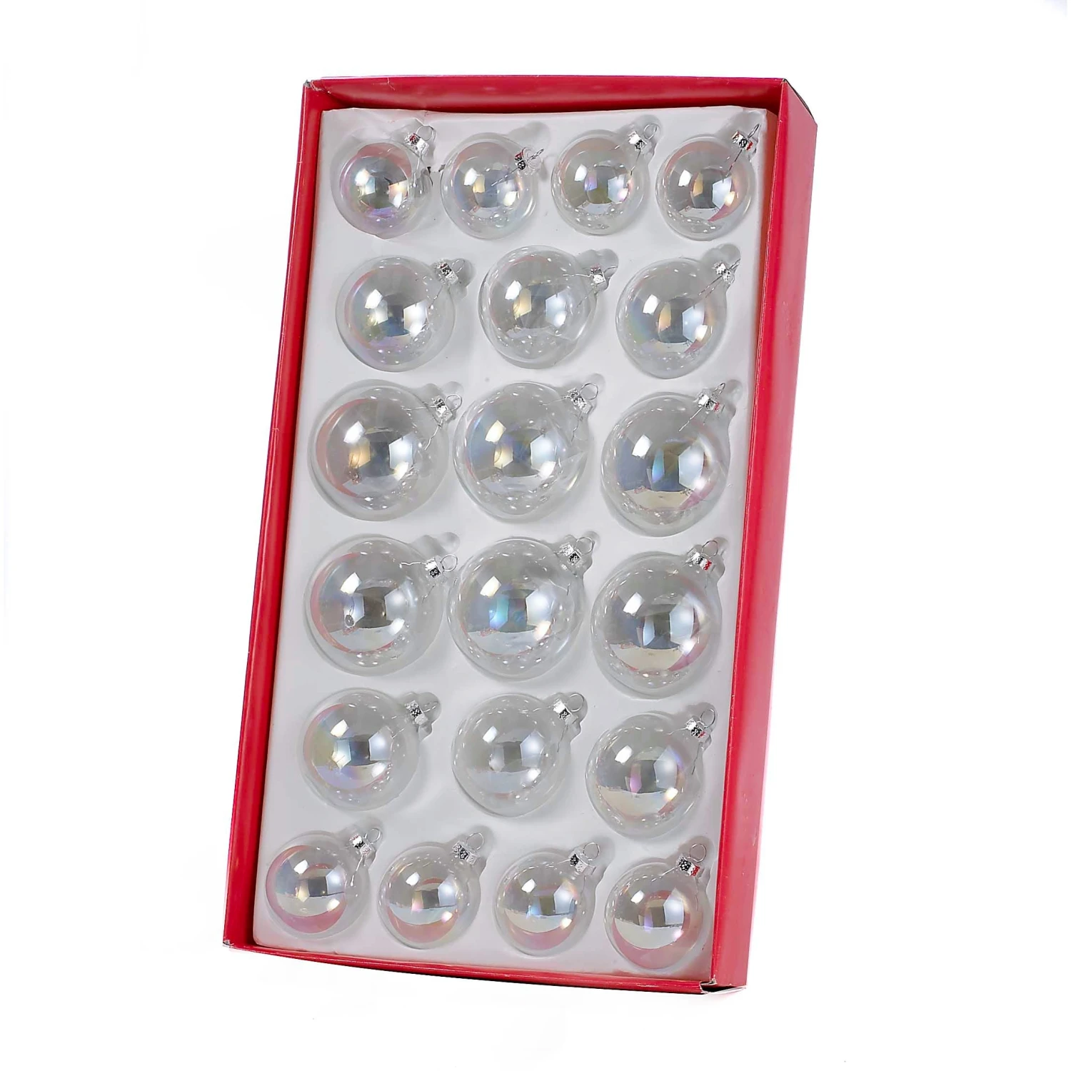 This Kurt Adler Iridescent Glass Ball 20 Piece Ornament Set is a beautiful, festive way to add to the décor of your Christmas tree. Each ball has a clear, shimmering look, adding a truly unique touch to your décor. This set includes eight 60mm pieces, six 70mm pieces, and six 80mm pieces.